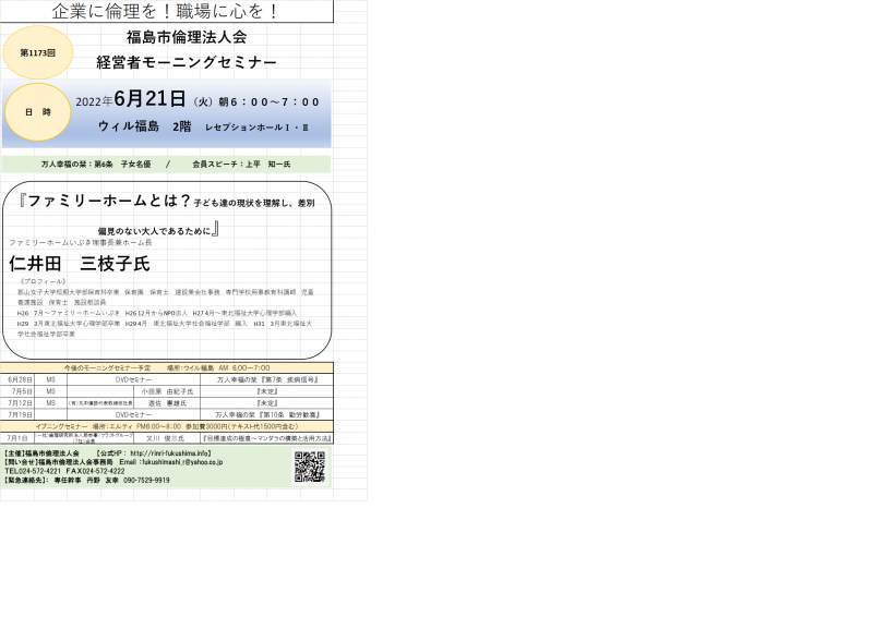 テーマ『ファミリーホームとは?子ども達の現状を理解し、差別偏見のない大人であるために』