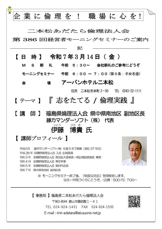 第386回 二本松あだたら倫理法人会モーニングセミナーのご案内